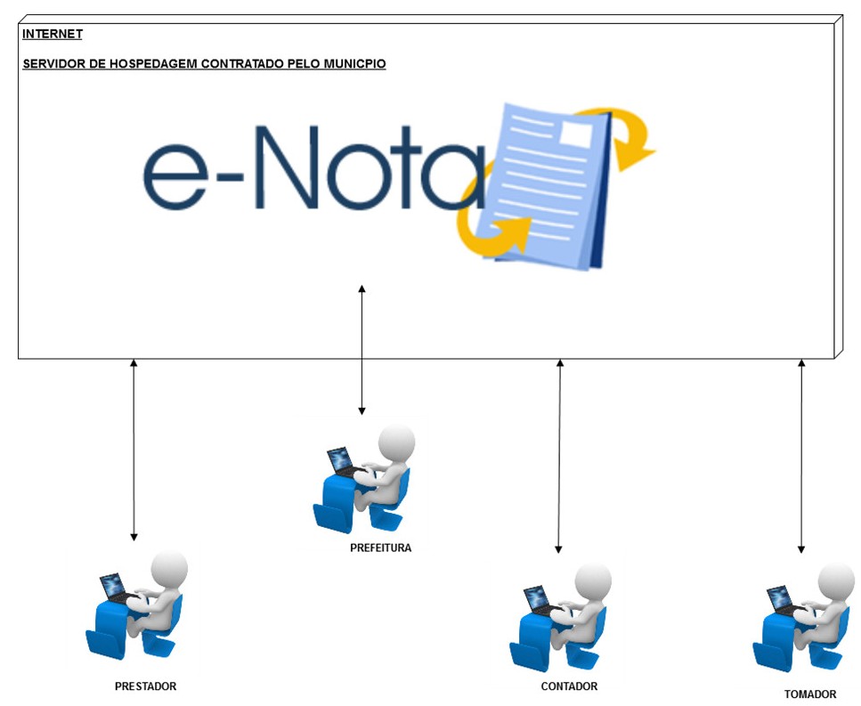 ma informatizado para emissão de Notas Fiscais Eletrônicas de Serviços, visando a modernização da Gestão Tributária de ISS/ISSQN. O e-Nota foi desenvolvido para auxiliar o fiscal de ISS da Prefeitura, bem como interagir com o contribuinte de ISS e o tomador de serviços. Além de contar com ferramenta de fácil utilização para gestão das informações pertinentes a emissão de NFe de Serviços, é um software público.